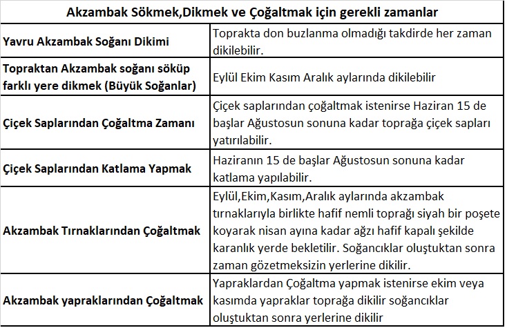 Ak Zambak Sapları ve Tırnaklarının Toprağa Dikildikten Sonraki Soğan Büyüme Safhaları Çiçeklenme Zamanı (Bu Bilgiler Tosya Şartları İçin Verilmiştir Farklı Bölgelerde Değişiklik Gösterebilir)